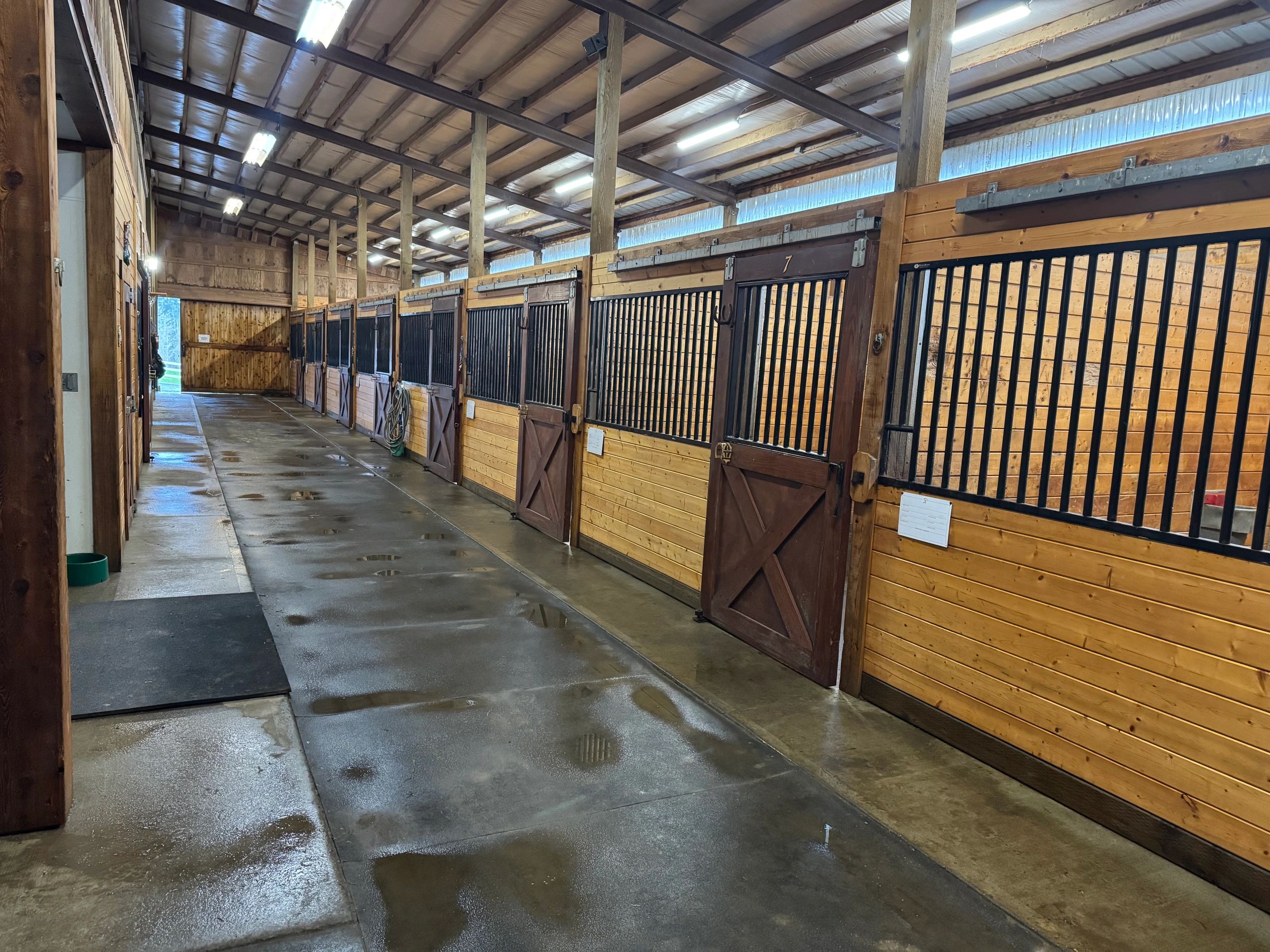 12 x 12 stalls with attached runs allowing 24/7 access to turnout