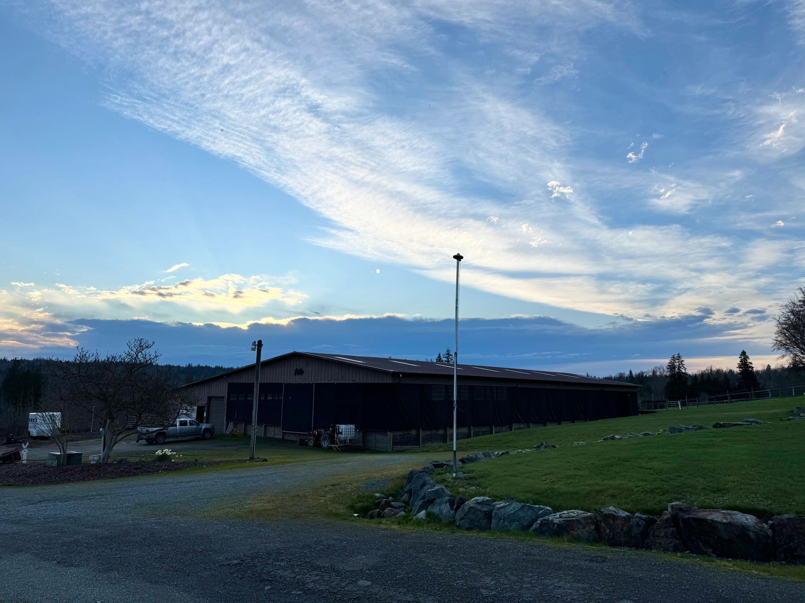 Horses are fed three times daily with premium timothy and/or alfalfa hay. Grain also provided